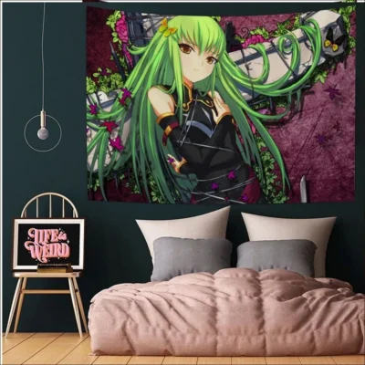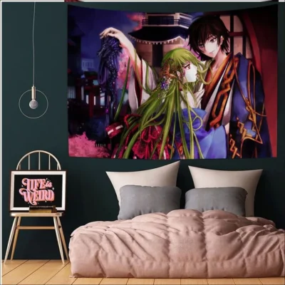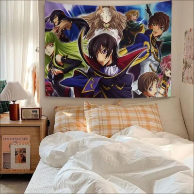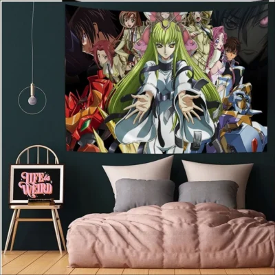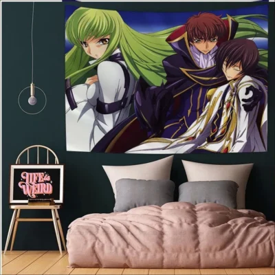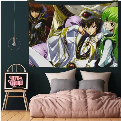 Discover a wide collection of captivating Code Geass Tapestries on our website’s dedicated category. Dive into the fantastical world of Code Geass with these intricately designed tapestries, showcasing your favorite characters and memorable scenes. Add a touch of elegance and fandom to your living space with these high-quality pieces, perfect for any Code Geass enthusiast.